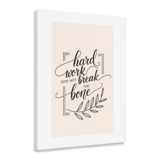 Acrylic Print - Inspirational 'Hard Work Does Not Break the Bone' Design